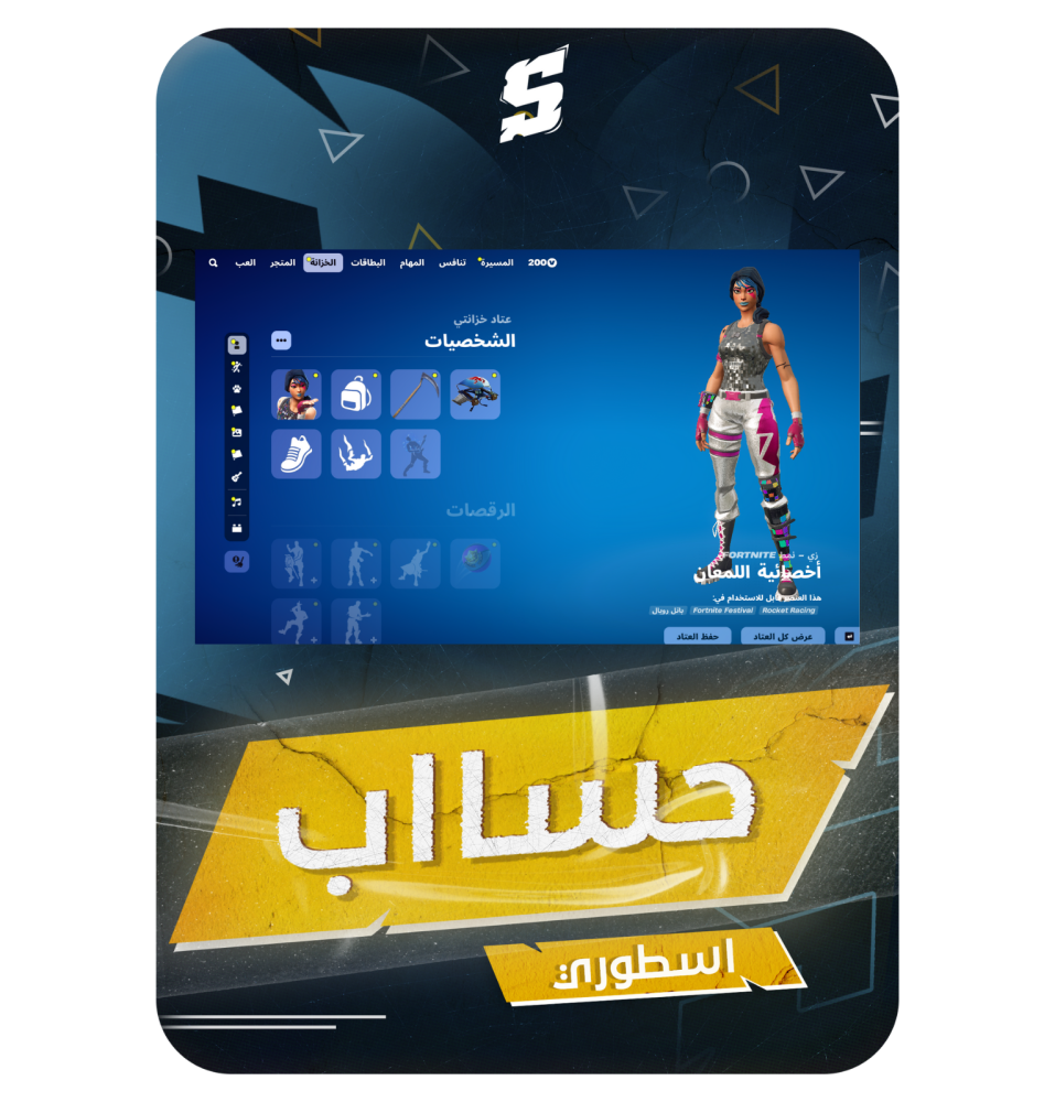 احصل على حساب فورتنايت نادر مع أكثر من 80 سكن مميز يشمل: بنت الديسكو، طور الزومبي القديم، حزمة 5 دولار النادره،، سكنات من الشوب، ورقصات نادرة مثل (فلوس – تيك ذل – فرش) :