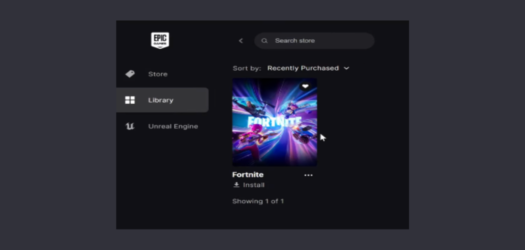 4️⃣ الآن يمكنك فتح اللعبة: بعد انتهاء التحميل، انتقل إلى قسم المكتبة (Library)، واضغط على أيقونة فورتنايت (Fortnite) وابدأ اللعب واستمتع بأروع وأندر حسابات فورتنايت اللي تخليك مميز عن غيرك.
