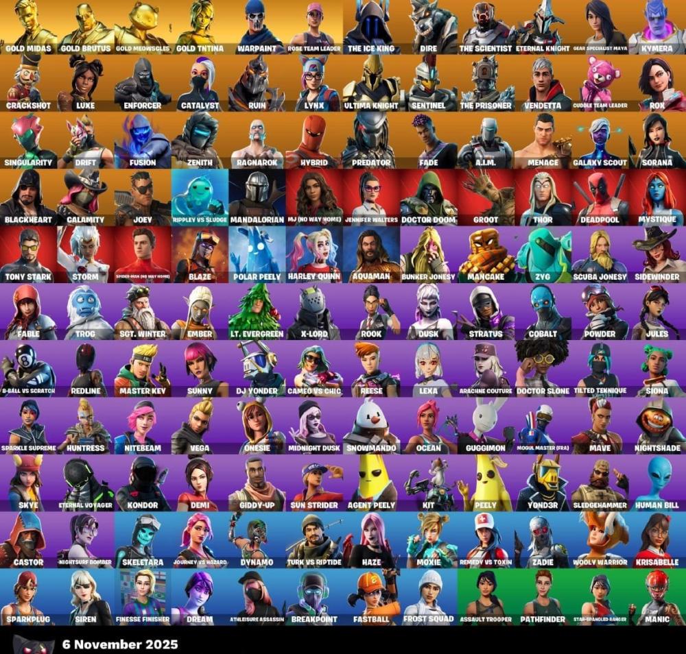 احصل على حساب فورتنايت نادر مع أكثر من 130 سكن مميز يشمل: مايدس الذهبي، فاس النعناع، فاس كريتوس، اغلب حزم فورت، سكنات من شوب, طور الزومب القديم, بنرات نادرة, ورقصات من شوب: